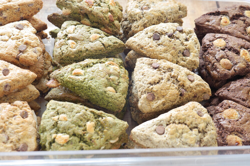 말차 제품은 구울 때 초록초록하니 ~~~기분이 더 좋아지는 아이에요. 삼각스콘 라인 중 유행을 안타고 선두 순위를 계속 지키는 아이입니다. 지점별로 순위가 많이 달라지는 경우가 있는데 3지점에서 상위권을 2018년 부터 지키고 있습니다.