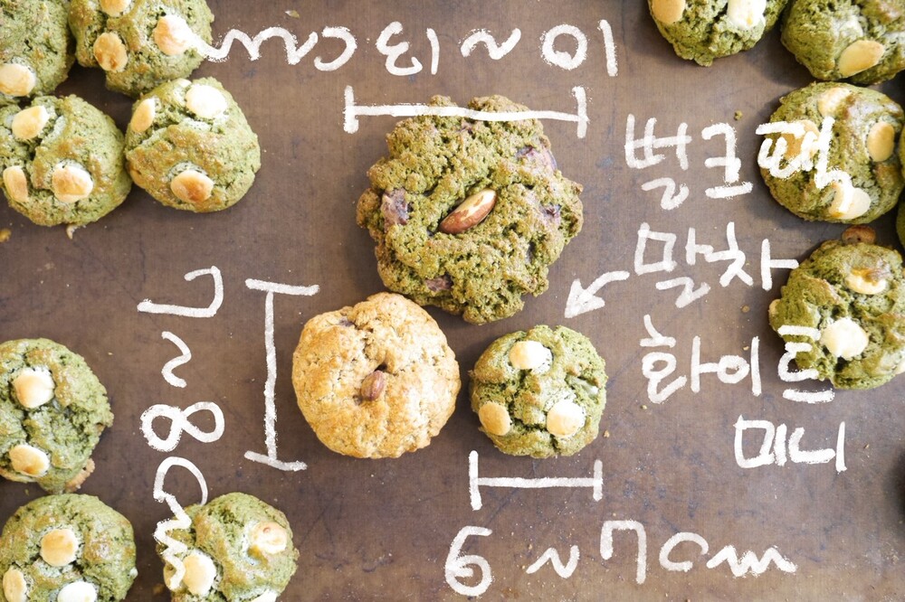 •원재료명(원산지) 우리통밀(국내산), 말차(국내산), 화이트초코칩(프랑스),유크림(국내산,)베이킹파우더(국내산,알루미늄 프리),유기농비정제원당(브라질),소금(국내산),정제수